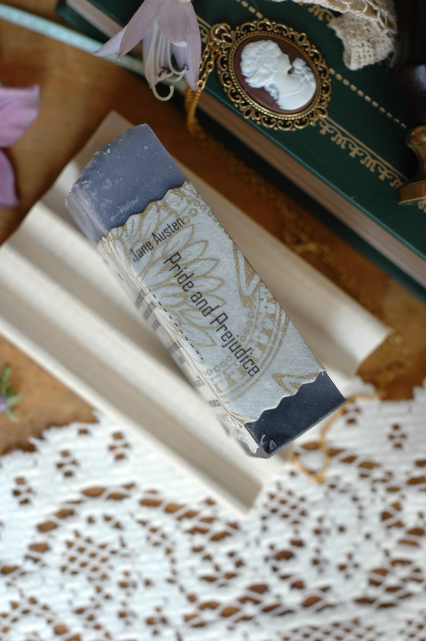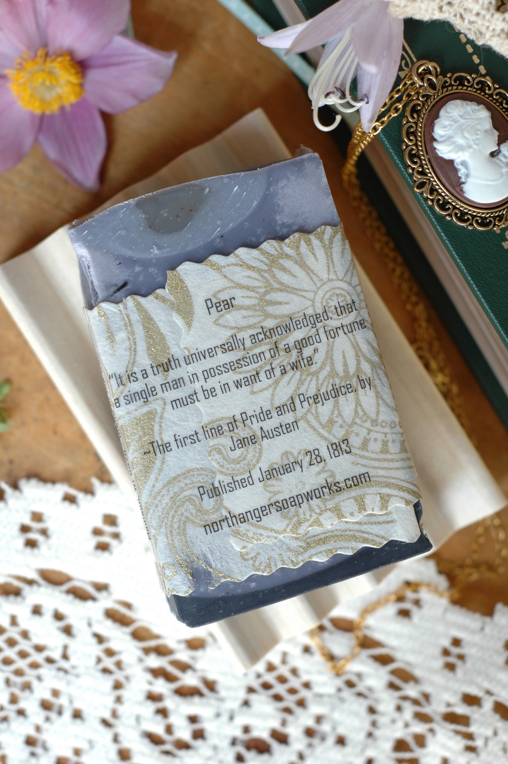 Pride and Prejudice is Jane Austen’s second published novel and most well known. It was published January 28, 1813. This pear scented bar soap is part of our Austen Classics collection.