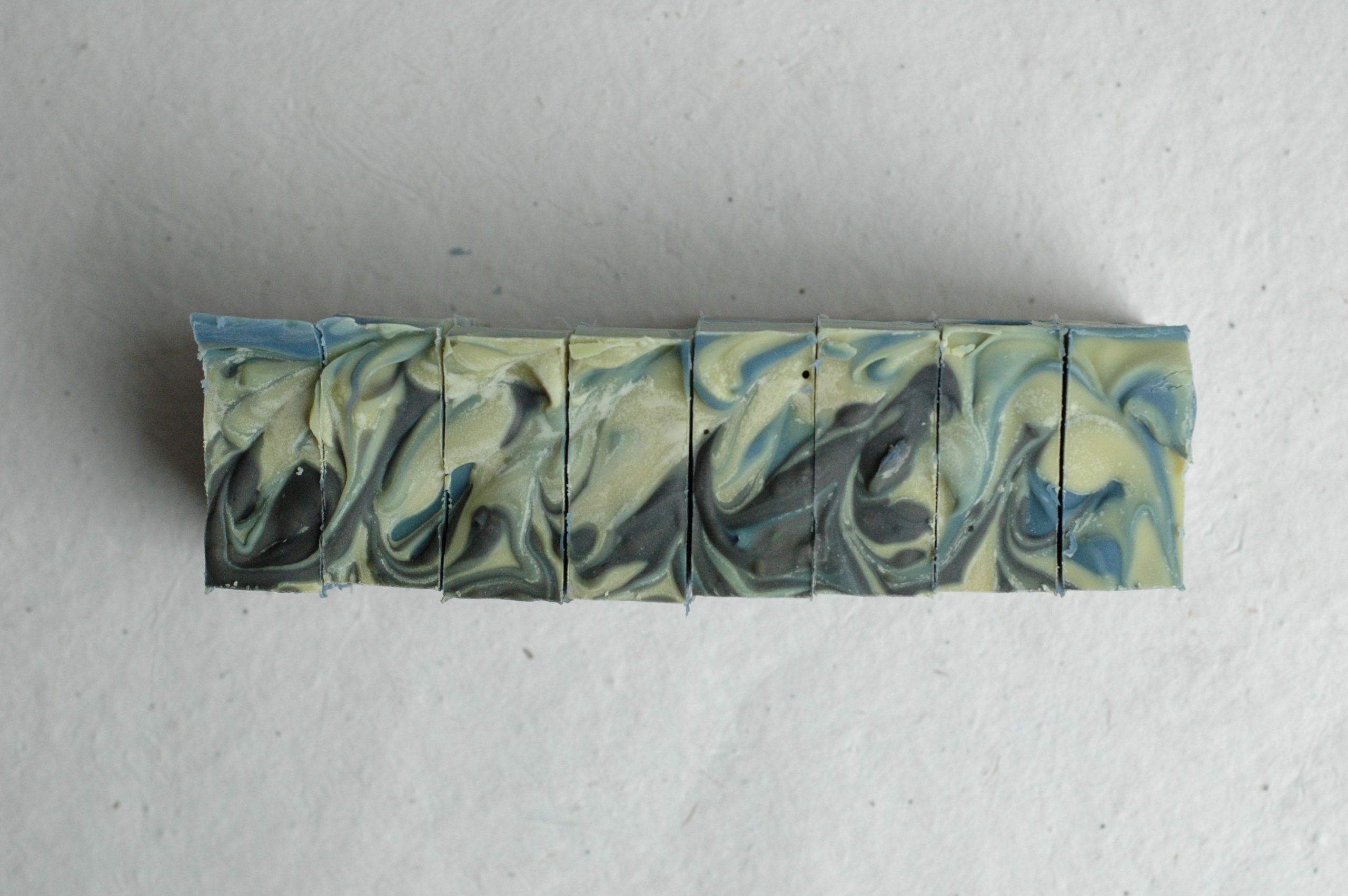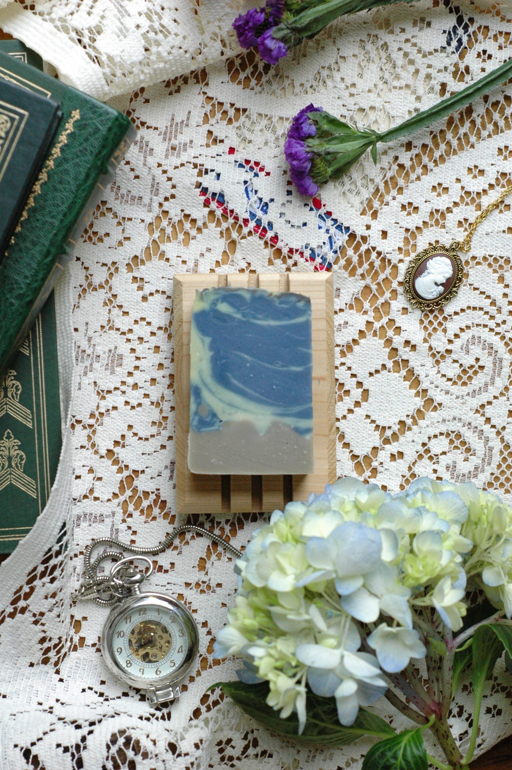Rational Creatures bar soap is a fresh and clean scent with notes of bergamot, apricot, and currant. The bar depicts an artistic scene of wild ocean currents, strong and willful. These are not calm waters! Mrs. Croft would be right at home among the waves.