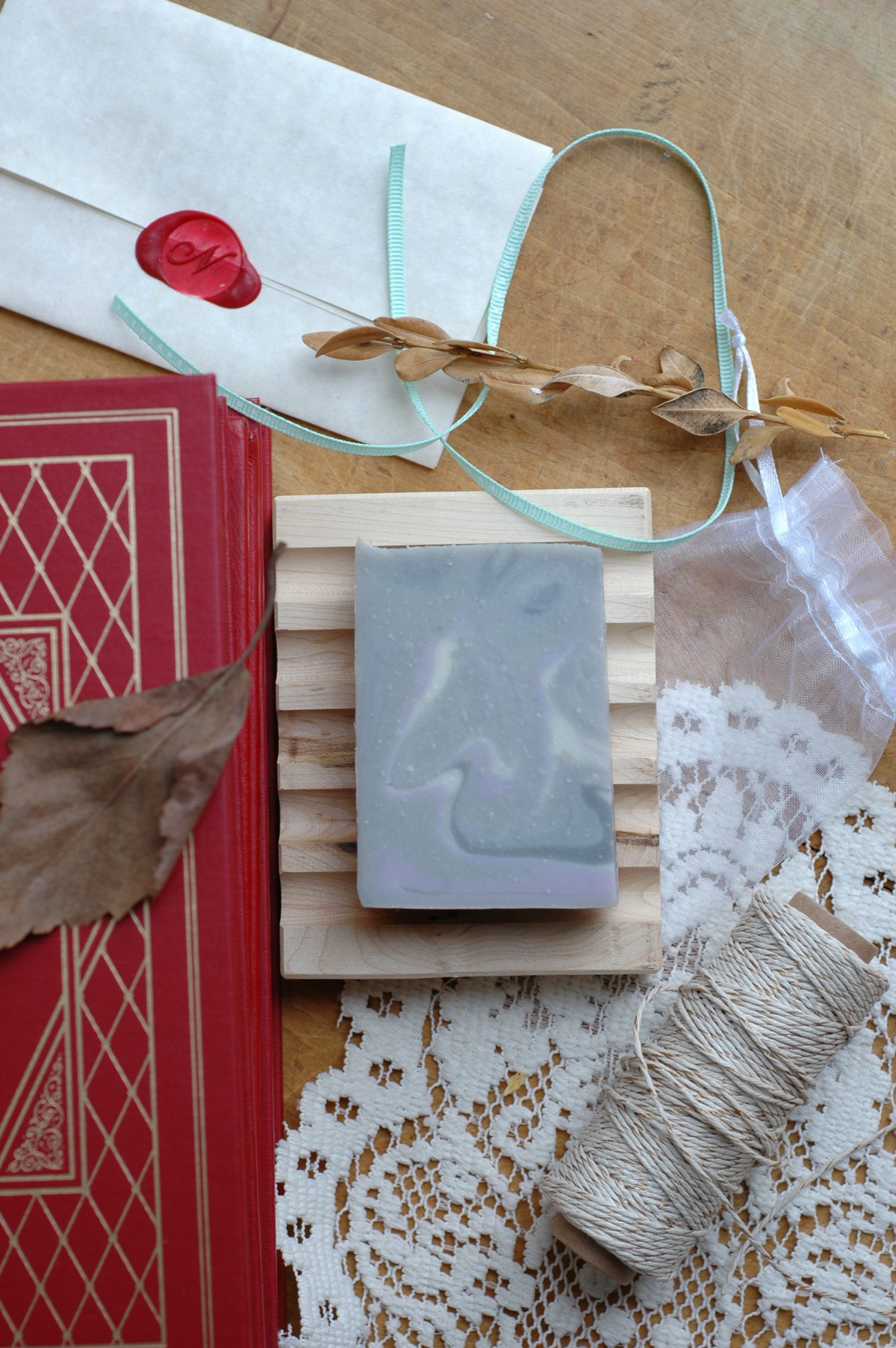Our first Bronte inspired soap, Reader, I Married Him is inspired from one of our favorite lines in literature. Scented with a moody black raspberry vanilla. Such heart-stirring words! The lavender and gray colors are inspired by the darkness lifting for Jane and Rochester.