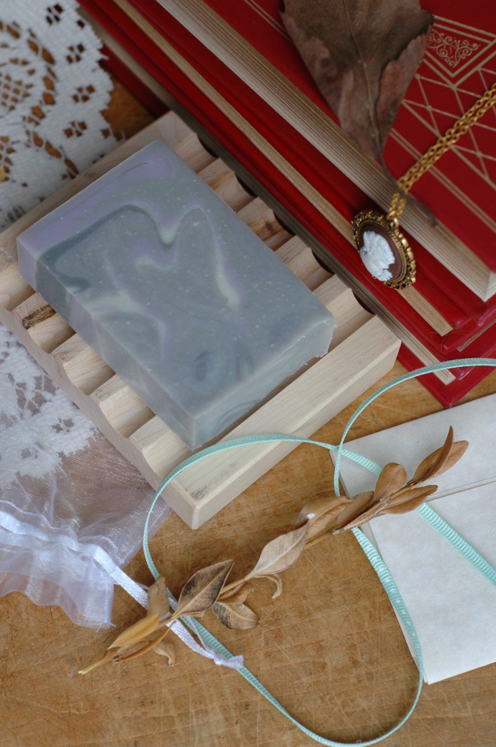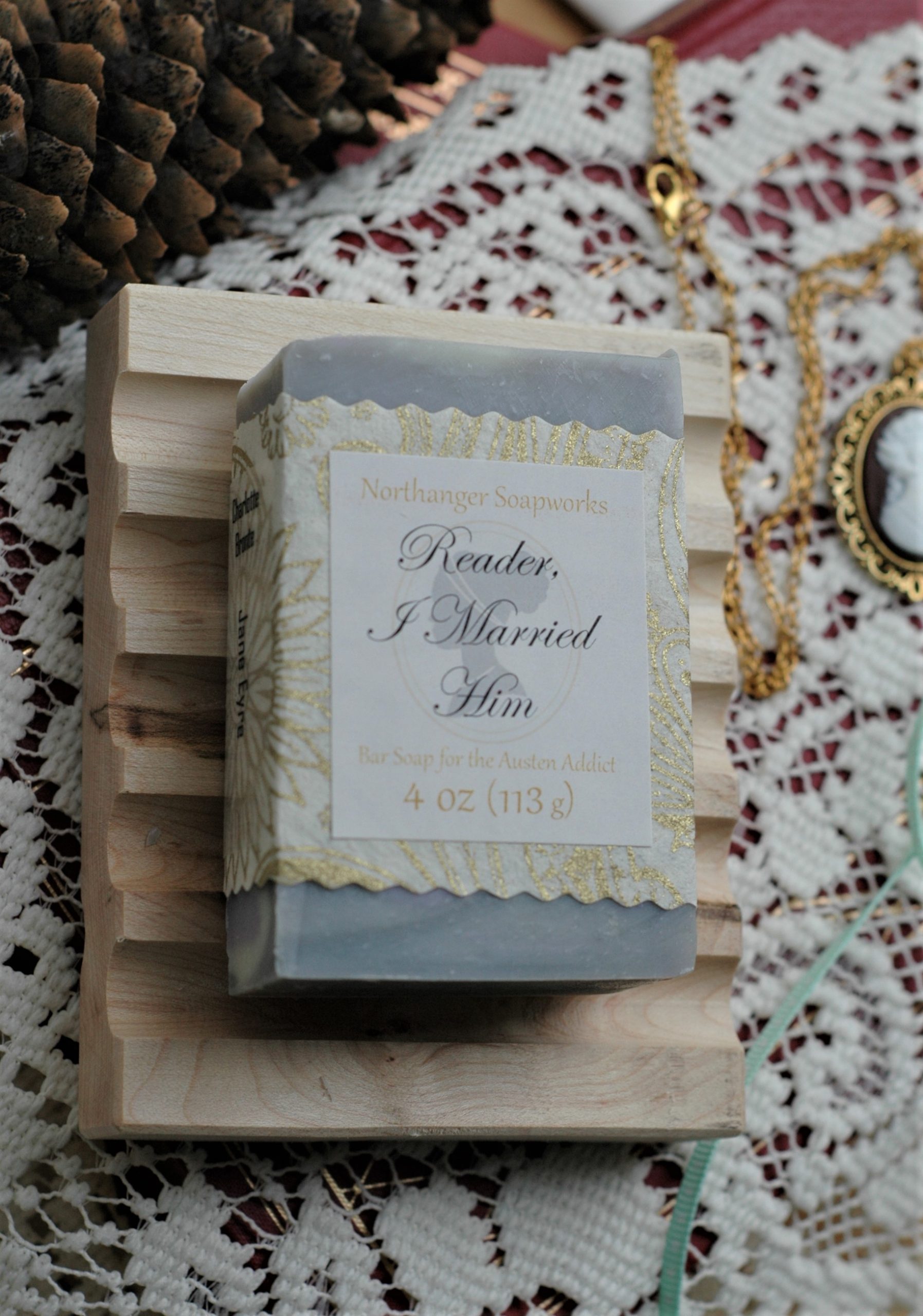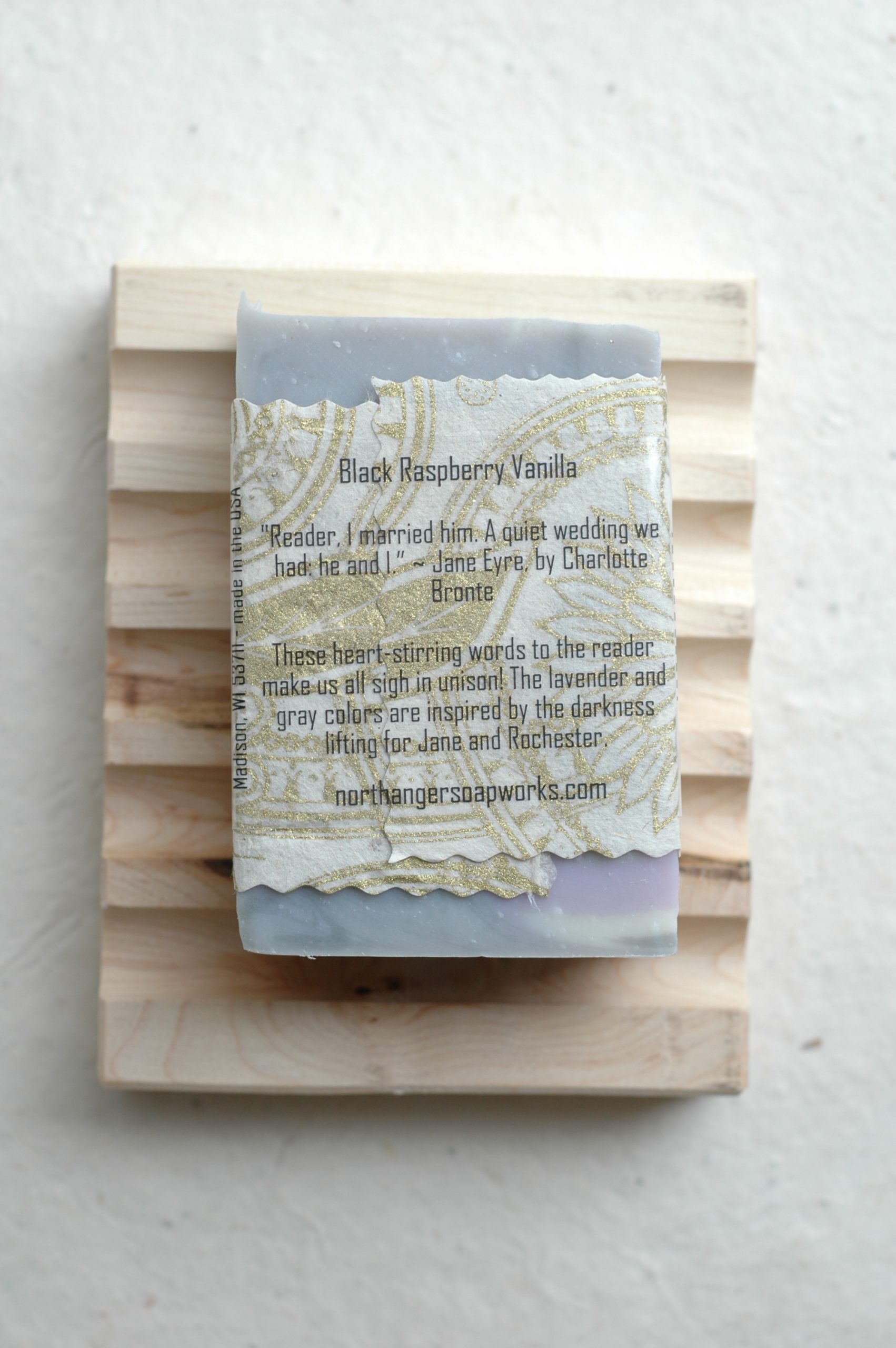 Our first Bronte inspired soap, Reader, I Married Him is inspired from one of our favorite lines in literature. Scented with a moody black raspberry vanilla. Such heart-stirring words! The lavender and gray colors are inspired by the darkness lifting for Jane and Rochester.