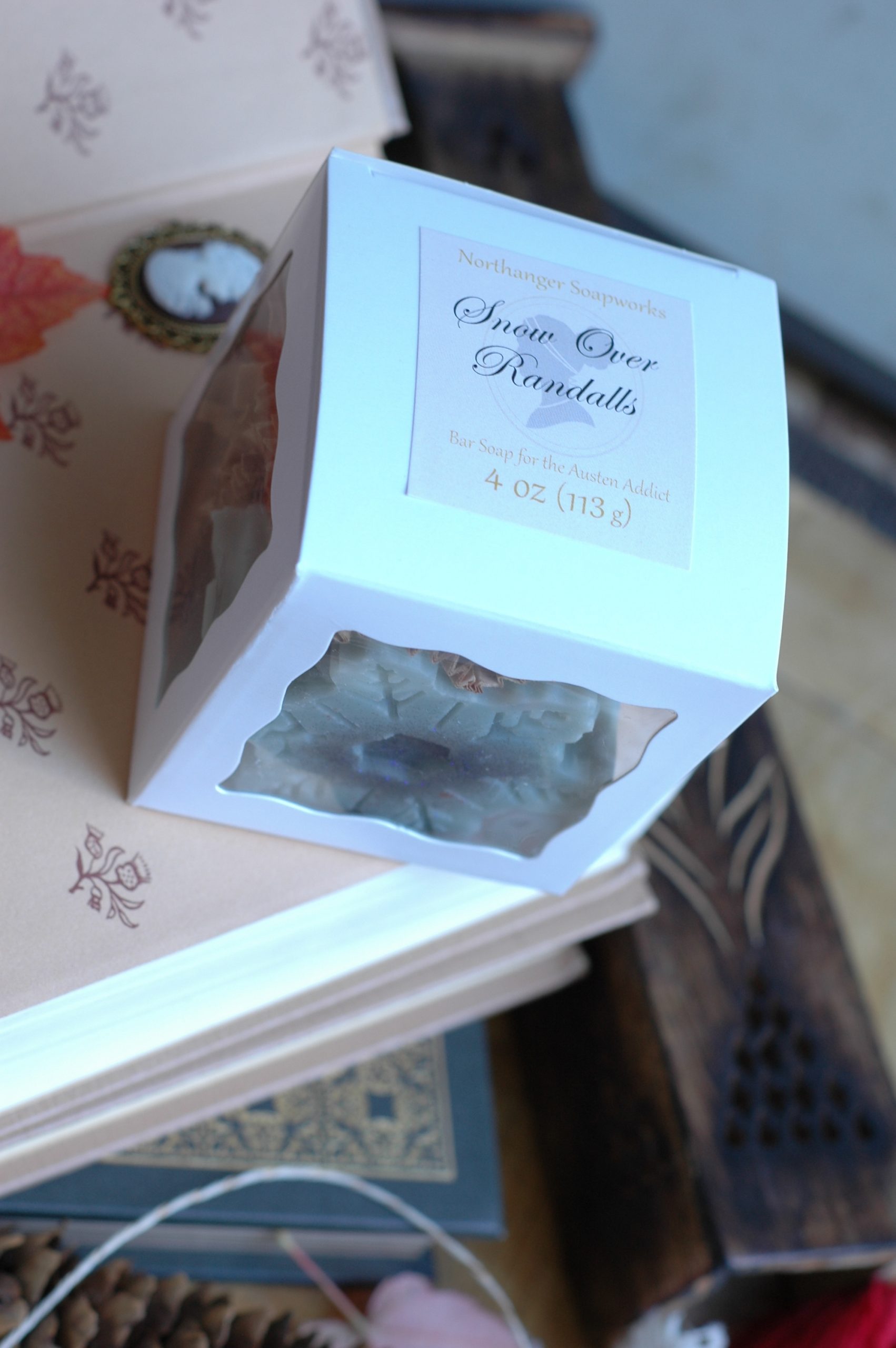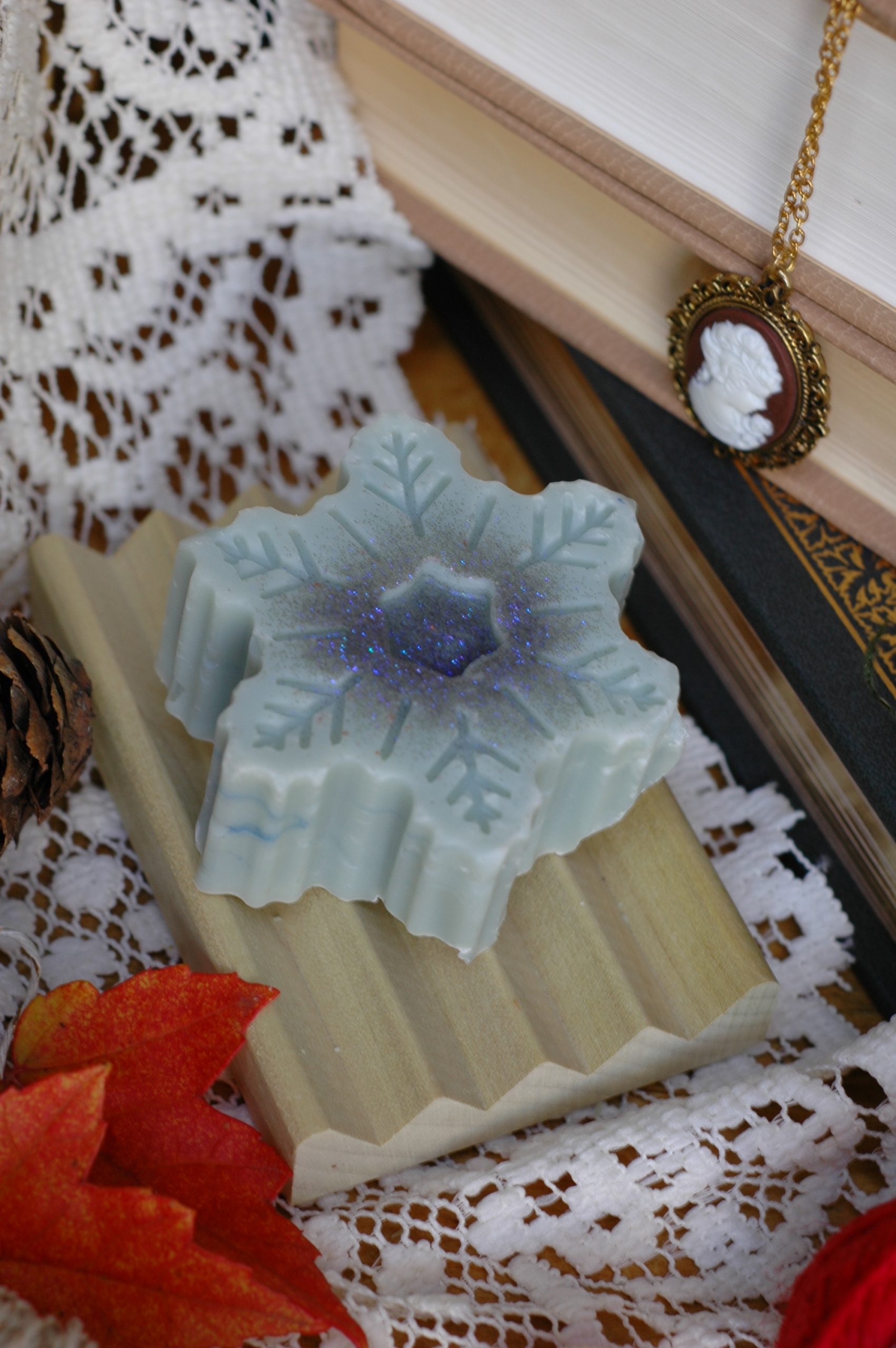 This soap snowflake is blue and sparkling and watching over all the Elton & Emma nonsense at the Westons Christmas Eve party! It comes in a cute white box.