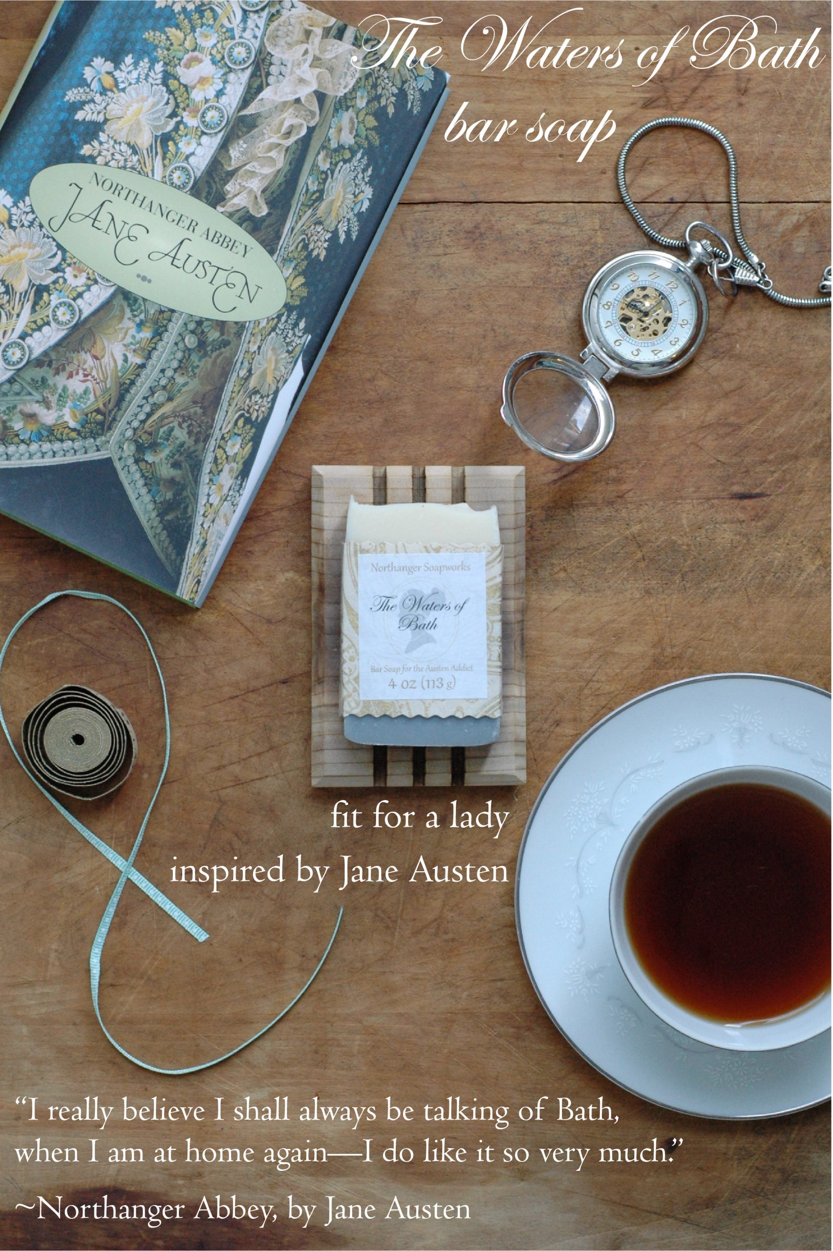 The Waters of Bath has a brisk and reviving scent made from an invigorating blend of tea tree, eucalyptus, lavender, and peppermint essential oil. Persuasion and Northanger Abbey are both partially set in Bath, England, and Jane Austen herself lived there between 1801 and 1806. The waters themselves attracted many visitors as they were thought to have special healing properties.