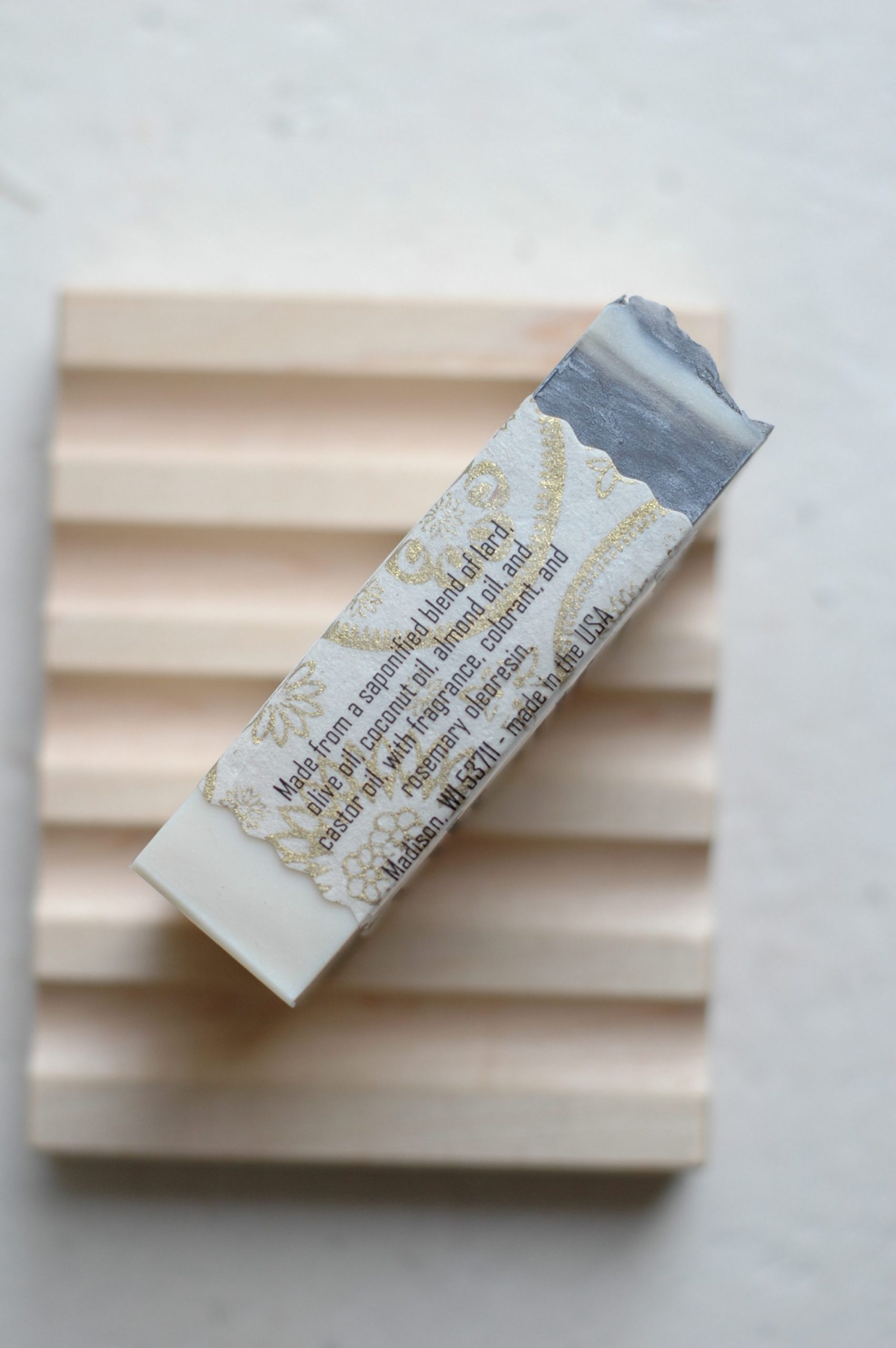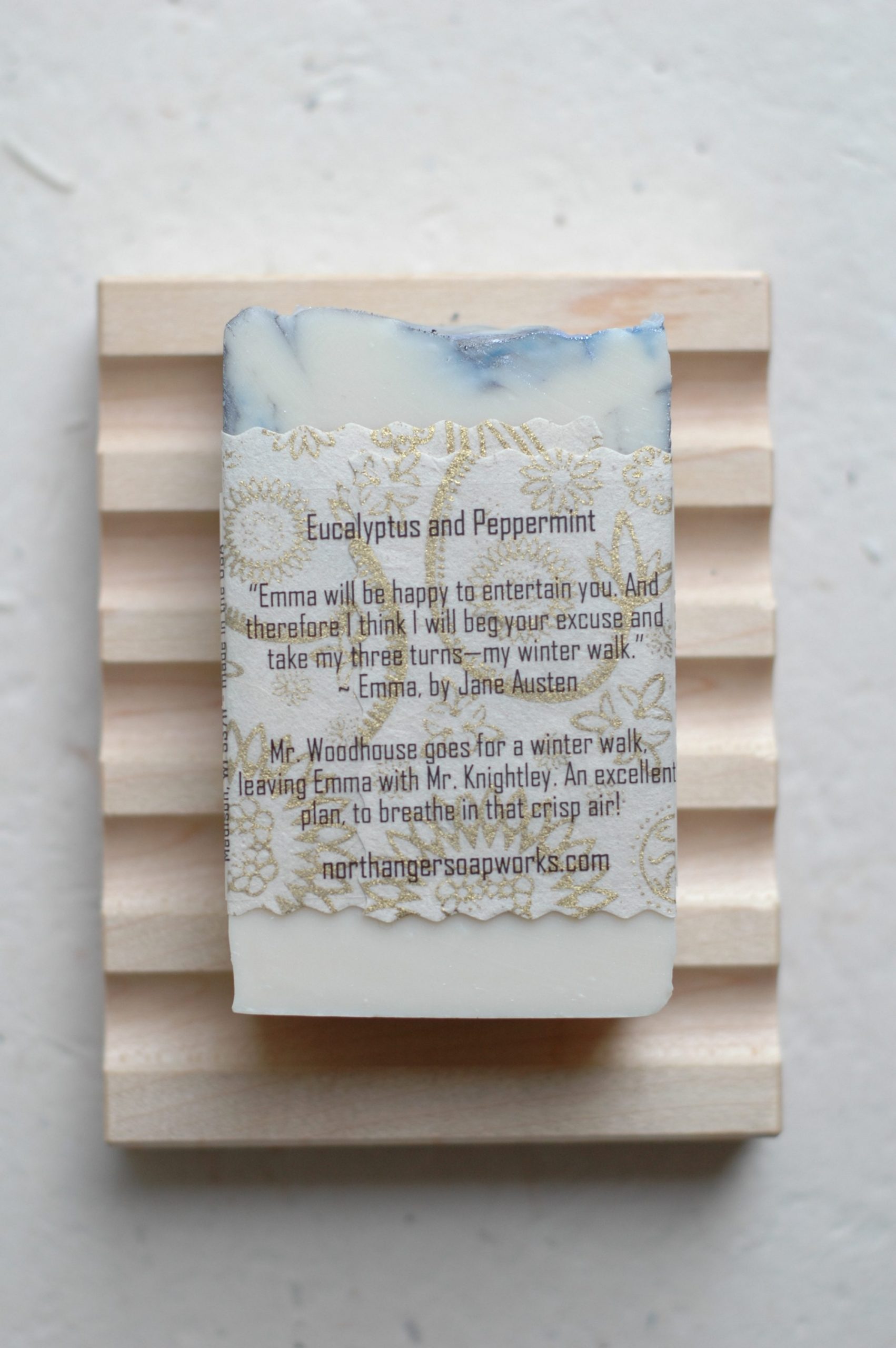 This eucalyptus and peppermint scented bar is inspired by his winter walk–refreshing, brisk, and herbal! Scented with pure essential oils.